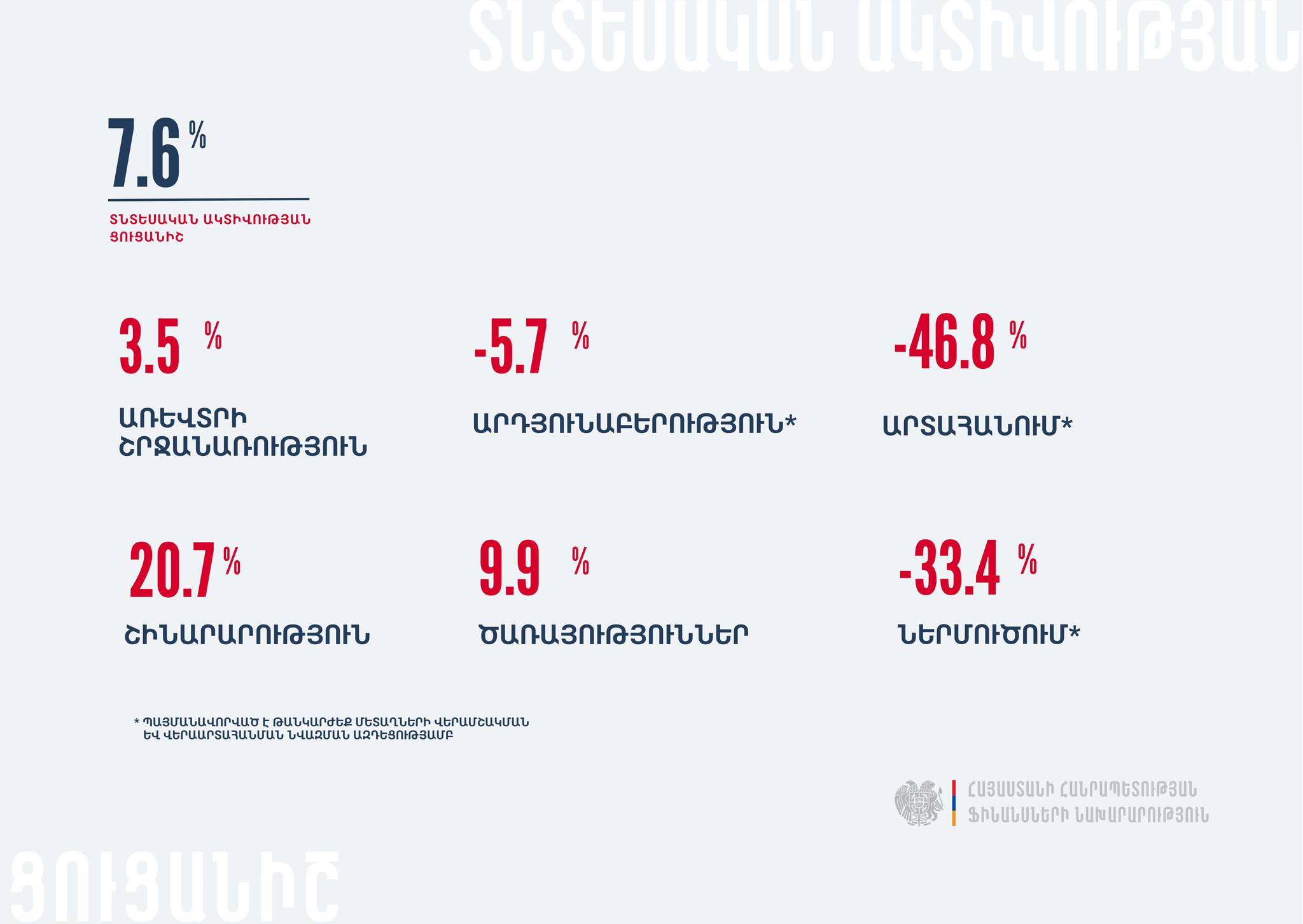 Արդյունաբերություն – -5.7 % Շինարարություն – 20.7 %