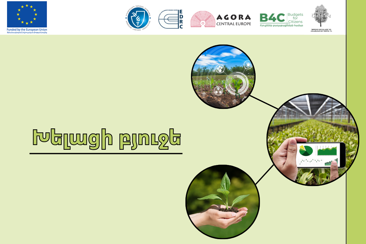 Սույն հրապարակումը մշակվել է Եվրոպական միության ֆինանսական աջակցությամբ, «Իրավաբանների հայկական ասոցիացիա» ՀԿ-ի ,«Տնտեսական զարգացման և հետազոտությունների կենտրոն» ՀԿ-ի և «Ագորա Սենթրլ Յուրոփ» ՀԿ-ի (Չեխիա) հետ համագործակցաբար գործարկվող «Բյուջեներ քաղաքացիների համար» ծրագրով տրամադրված ենթադրամաշնորհի շրջանակներում «Շենացնենք մեր գյուղը» հասարակական կազմակերպության կողմից իրականացվող «Խելացի բյուջե» ծրագրի շրջանակներում: Բովանդակության համար պատասխանատվություն է կրում «Շենացնենք մեր գյուղը» հասարակական կազմակերպությունը, և պարտադիր չէ, որ այն արտահայտի Եվրոպական միության տեսակետները: