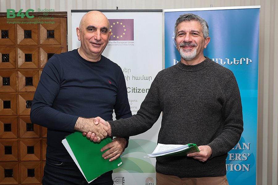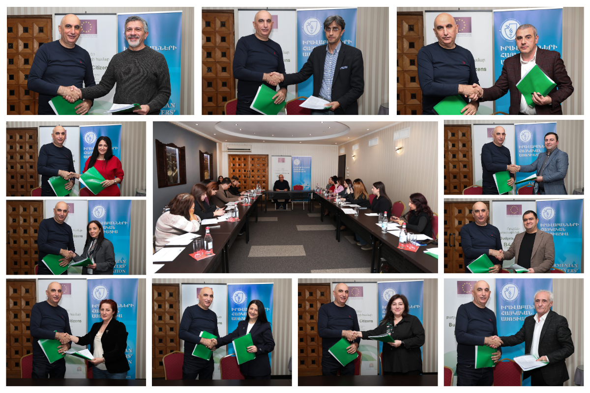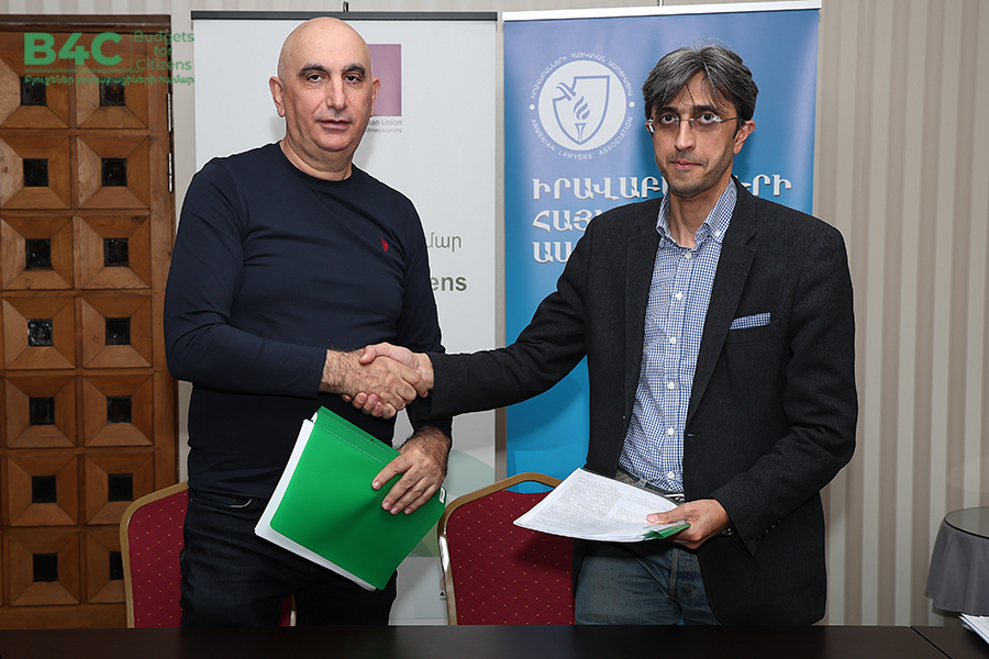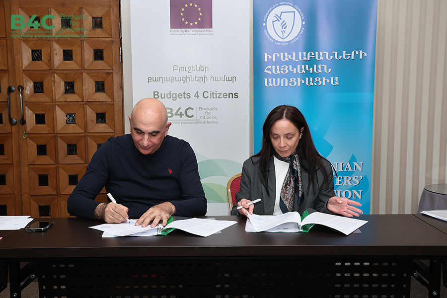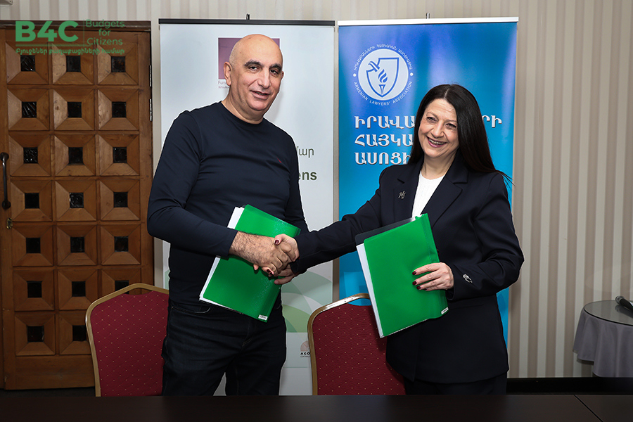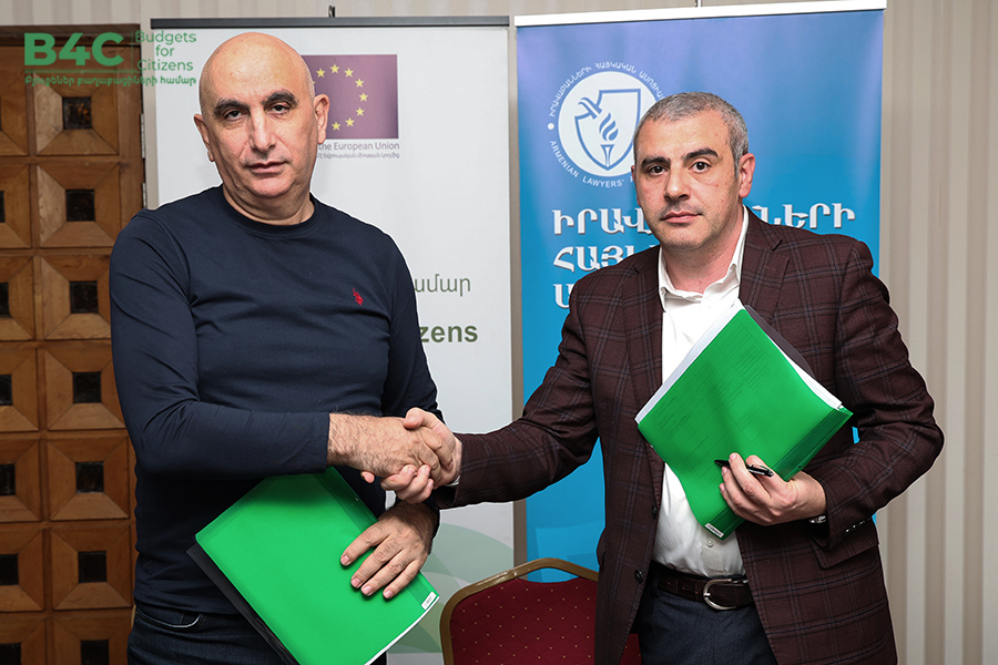 2026 թվականի մարտի 20-ին տեղի է ունեցել «Իրավաբանների հայկական ասոցիացիա» հասարակական կազմակերպության կողմից՝ «Տնտեսական զարգացման և հետազոտությունների կենտրոն» հասարակական կազմակերպության և «Ագորա Սենթրլ Յուրոփ» հասարակական կազմակերպության հետ համագործակցաբար իրականացվող «Բյուջեներ քաղաքացիների համար» ծրագրի շրջանակում քաղաքացիական հասարակության ներկայացուցիչների հետ շահերի պաշտպանության ենթադրամաշնորհային համաձայնագրերի կնքման հանդիսավոր արարողությունը և ենթադրամաշնորհառուների համար նախատեսված պարտադիր մեկօրյա ուսուցումը։ Ծրագիրն իրականացվում է Եվրոպական միության ֆինանսական աջակցությամբ։