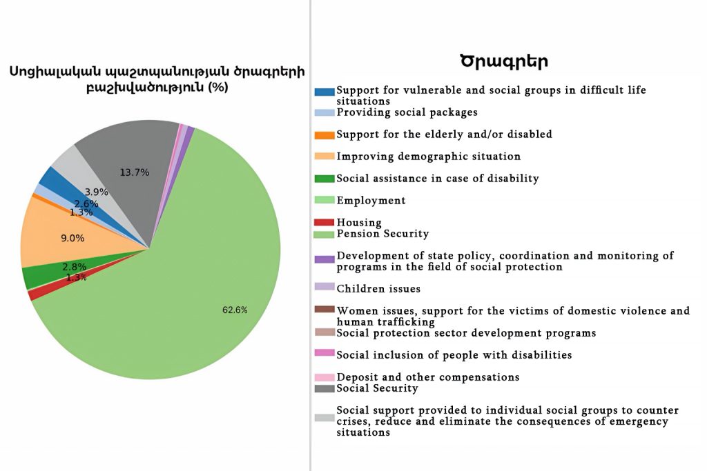 - General analysis of the budget of Social Protection Sector, with a particular focus on a comprehensive analysis of the budget program of Social Assistance Sector, “1011 – Support to Vulnerable and Socially Disadvantaged Groups in Difficult Life Situations”. As a result of the analysis, one analytical report, in which the results of the analysis are presented both in text form and in the form of tables and graphs, was developed. As a result of the analysis, the share of budget program 1011 in the Social Protection budget in 2025 was to approximately2.6%.