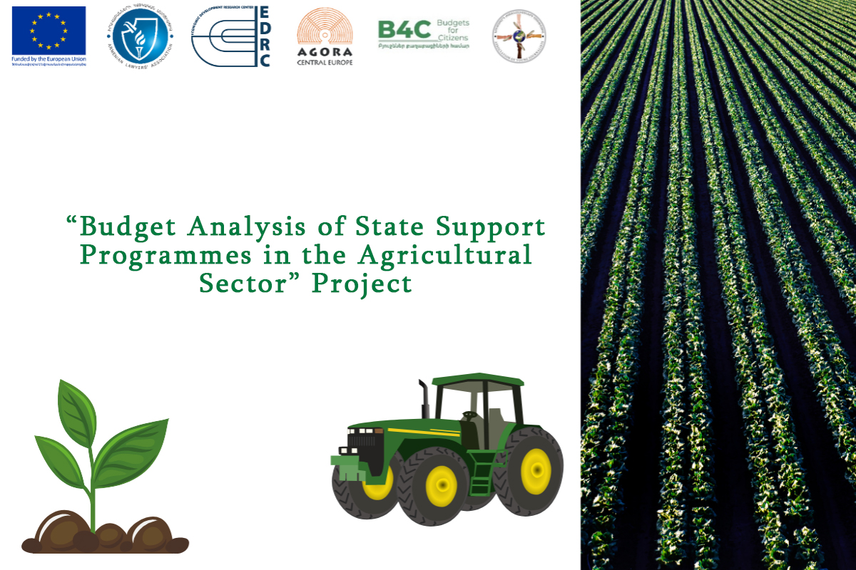 The “Association of Young Journalists” Non-Governmental Organization is implementing the “Budget Analysis of State Support Programmes in the Agricultural Sector” project within the framework of a sub-grant provided by the “Budgets for Citizens” programme implemented with the financial support of the European Union by the Armenian Lawyers’ Association, in cooperation with partners “Economic Development and Research Center” (EDRC) NGO and “Agora Central Europe” NGO (Czech Republic).