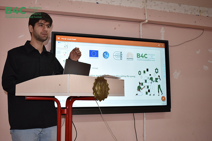 This event was implemented with the financial support of the European Union, within the framework of a sub-grant provided by the “Budgets for Citizens” project, implemented in cooperation with the Armenian Lawyers’ Association NGO, the Center for Economic Development and Research NGO, and Agora Central Europe NGO (Czech Republic).