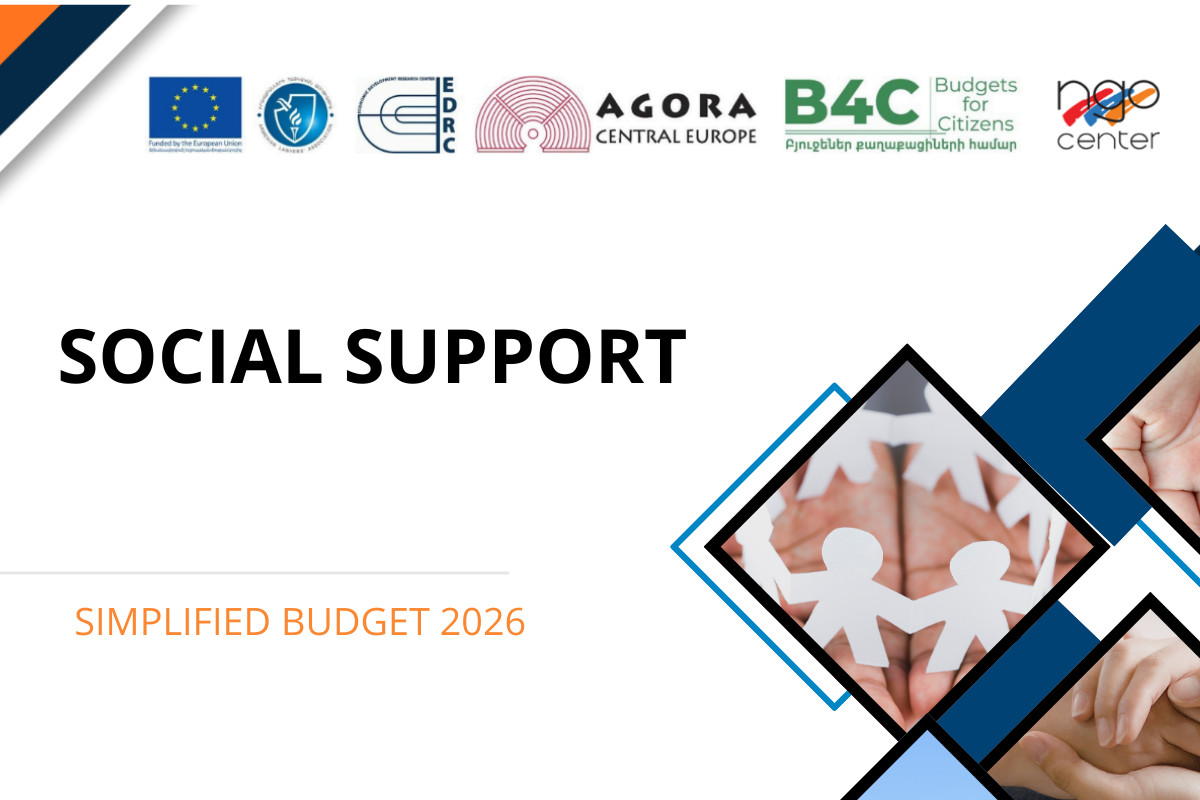 This publication has been developed with the financial support of the European Union within the framework of a sub-grant provided under the “Budgets for Citizens” project implemented by the Armenian Lawyers’ Association, in cooperation with partners “Economic Development and Research Center” (EDRC) NGO and “Agora Central Europe” NGO (Czech Republic). It has been implemented by the “NGO Center” Non-Governmental Organization within the framework of the “Budget Analysis in the Social Sector” project. The “NGO Center” Civil Society Development NGO is responsible for the content, and it does not necessarily reflect the views of the European Union.
